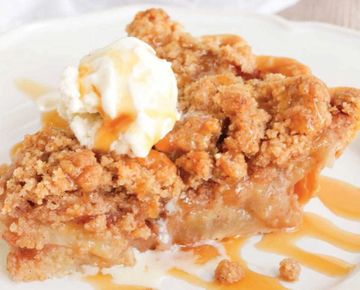 Our classic apple pie with a crunchy, buttery, streusel-like topping. Still perfect a la mode style.