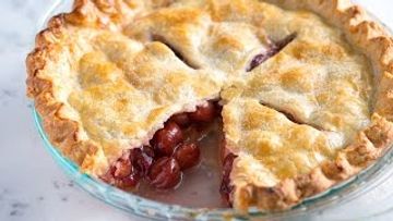 Easy as cherry. A classic, inviting dessert featuring our flaky, golden, buttery crust generously filled with a vibrant, thick, sweet-tart cherry filling. Simply the best!